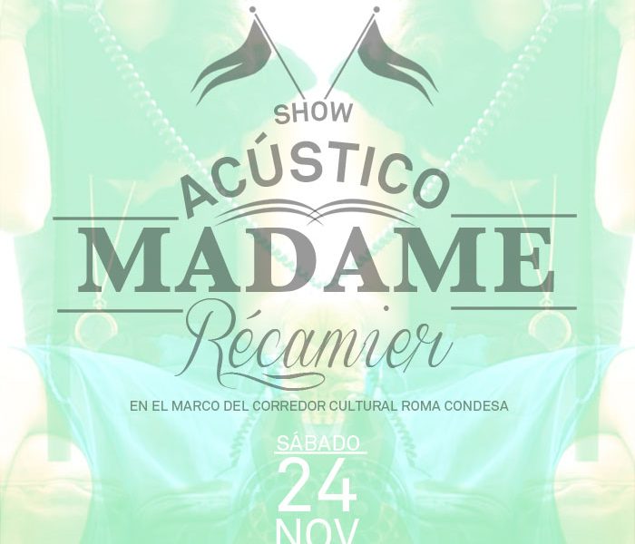 Como invitada tendremos a Madame Récamier presentando un show acústico en el Cine Tonalá. Esto será en punto de las 18:00 horas, sin embargo recomendamos ampliamente que lleguen un par de horas antes para disfrutar de la deliciosa comida que preparan en uno de los lugares más bonitos de la Roma.